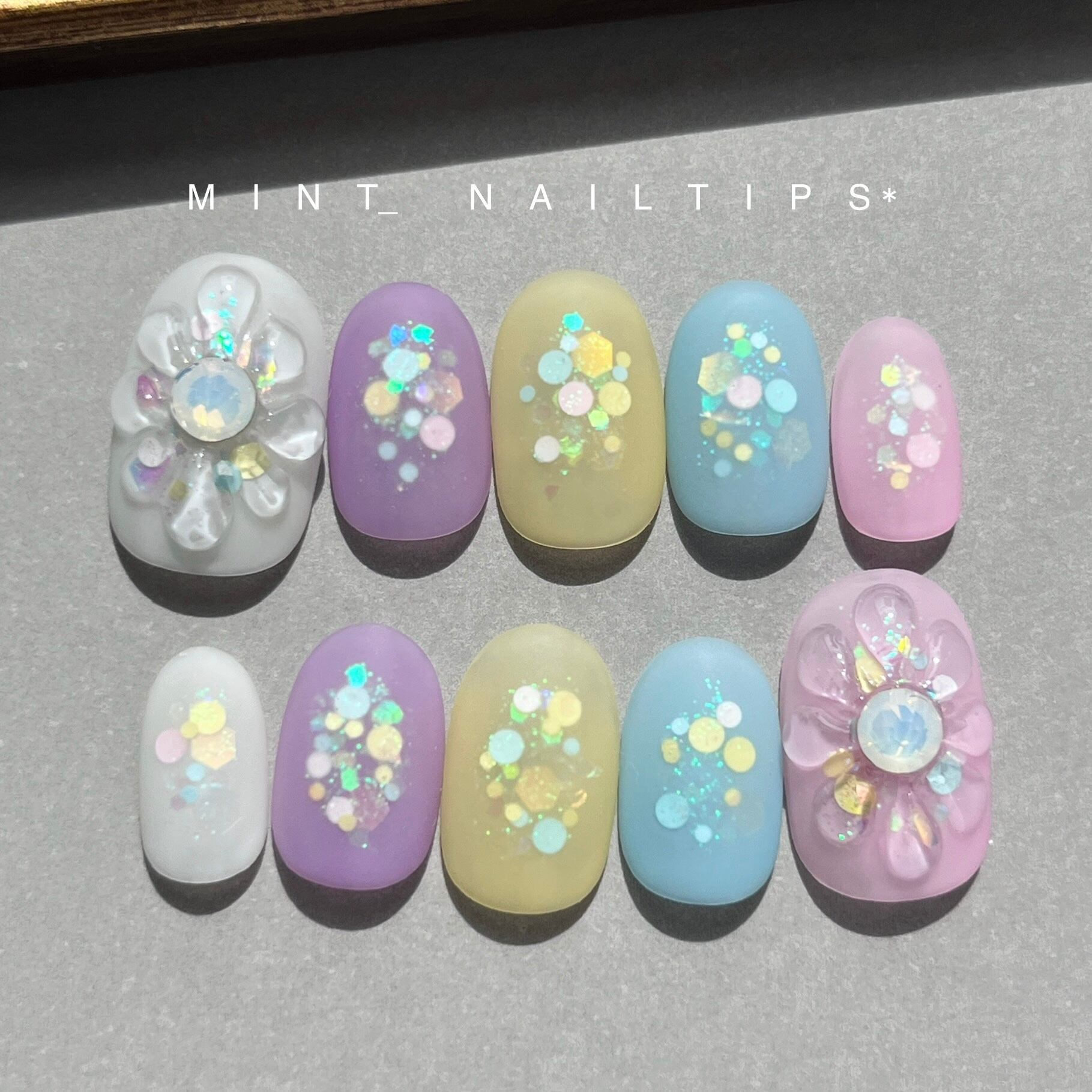 マットマカロンカラーにぷっくりフラワー〖no.118〗